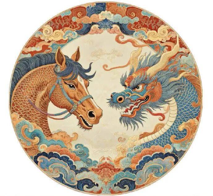 图案背景及马身辅以祥云纹、火焰纹、缠枝纹等传统吉祥纹样,既隐喻福运连绵,亦强化东方美学底蕴。