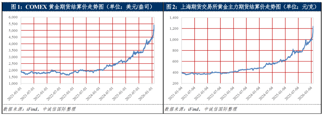 2026年1月,在美伊核对抗升级、美国拟对欧加征关税、委内瑞拉局势动荡等地缘政治风险升温、美联储降息预期强化及投机资金集中涌入等多重因素共振下金价一路冲高,1月29日COMEX金价盘中触及历史最高点5,598美元/盎司。1月30日偏人选凯文·沃什获美联储主席提名,叠加高位获利盘集中了结、杠杆资金强制平仓踩踏,1月31日创下近40年最大单日跌幅,COMEX金价盘中最大跌幅超12%,1月31日至2月2日3天累计跌幅约20%,价格一度回落至4,500美元/盎司下方。但多重不确定性因素对金价起到支撑作用,全年金价或仍有上涨预期。